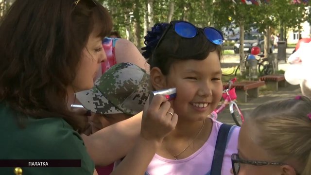 Программа праздника была в этом году обширная. У Палаткинского Дома культуры, где было намечено основное действие, уже в обед каждый прохожий мог получить флажок и …
