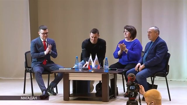 Президент Федерации лыжных гонок России Елена Вяльбе и заслуженный мастер спорта Александр Легков встретились с магаданскими юными спортсменами.На встрече собралось более 50 ребят. Лыжники …